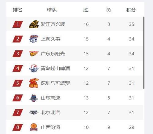 CBA最新排名:山東進(jìn)入四強(qiáng),首鋼第七,遼寧跌出季后賽