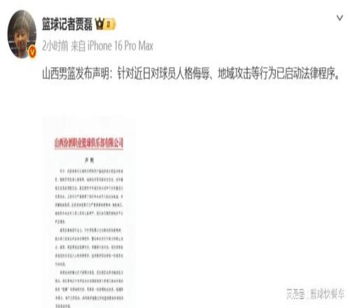 另外,值得一提的是,在迪亞洛和潘江被處罰不久后,山西男籃也在深夜強(qiáng)勢回?fù)袅恕a槍ι轿麝犜谳斍蚝?,迪亞洛和潘江等人遭到網(wǎng)絡(luò)上少數(shù)極端球迷的辱罵,山西隊也采取了強(qiáng)勢反擊。目前,他們已經(jīng)啟動法律程序,對于侮辱和攻擊山西隊球員和主教練的網(wǎng)友,他們將采取行動。在這里,我們也呼吁雙方球迷應(yīng)該理性看球,不要將不文明的動作與言語放到網(wǎng)絡(luò)上,甚至是攻擊雙方球員身上。