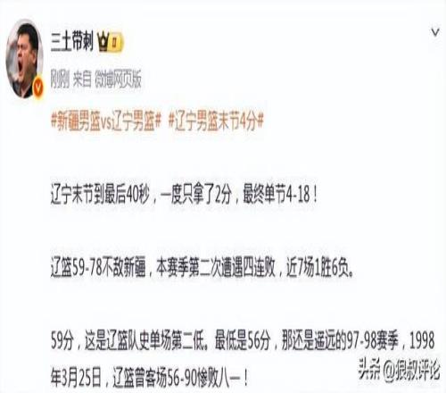 遼寧單節(jié)4分慘負(fù)新疆引熱議!球迷狂刷官媒“輸?shù)媚樁疾灰?/h1>