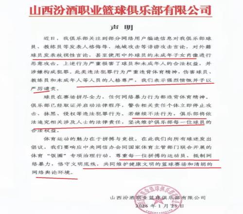 面對網(wǎng)絡(luò)的不良言論,山西隊也是忍無可忍!在深夜11點,正式發(fā)布了一份嚴(yán)正聲明。