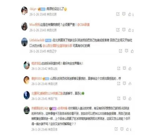 1月26日晚上的比賽,北京首鋼隊在客場以87-86險勝山西隊,這場比賽首鋼隊在周琦、趙睿等5名主力球員缺陣的情況下依舊能夠贏球,非常的不容易。但是在賽后山西隊主場卻出現(xiàn)了十分荒唐的一幕,北京首鋼隊球員退場的時候在球員通道被山西球迷吐口水,陳盈駿被吐到之后情緒激動和旁邊的安保工作人員理論,隨后在隊友雷蒙等人的勸說下回到更衣室。