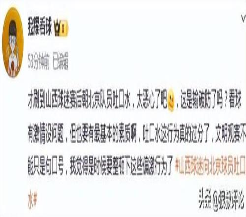 山西現(xiàn)場球迷對北京球員吐口水引熱議!陳盈駿妻子怒斥不文明行為