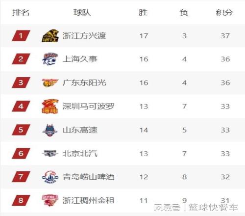 附:CBA積分榜最新排名