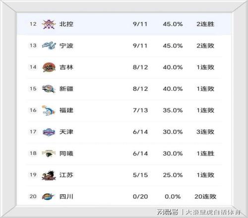 ③、遼寧上升2名來到第11位,四川依然一勝難求,賽季20連敗繼續(xù)墊底。