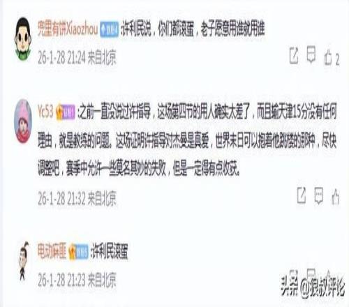 北京爆冷不敵天津引熱議!許利民用人遭質(zhì)疑首度被喊“下課”聲音