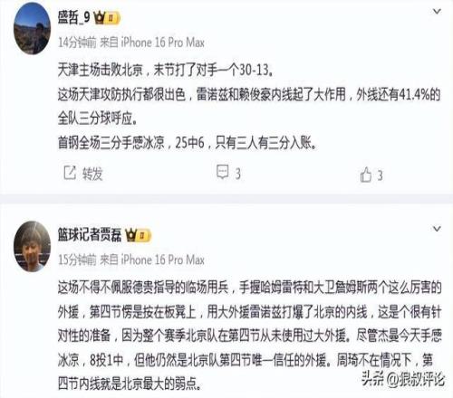 籃球記者賈磊發(fā)文點(diǎn)評:
