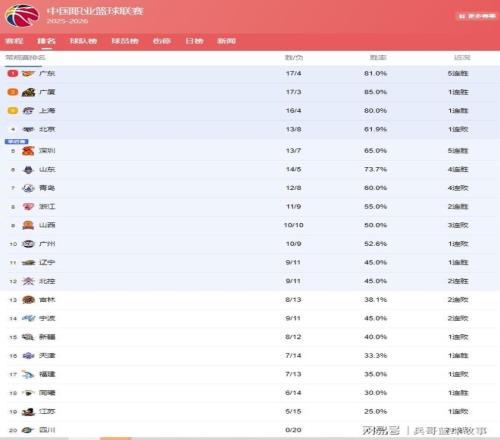 CBA排名大變!廣東登頂,北京斷崖下滑,廣州第10遼寧難保季后賽