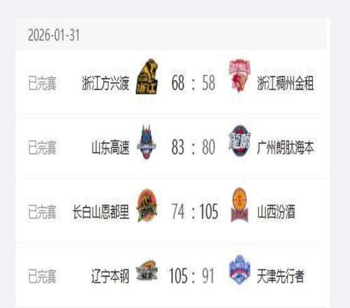 CBA常規(guī)賽,1月31日晚上共有4場比賽,其中浙江廣廈隊主場以68-58戰(zhàn)勝浙江稠州隊,山東高速男籃主場以83-80戰(zhàn)勝廣州龍獅隊,遼寧隊在主場以105-91戰(zhàn)勝天津隊,吉林隊主場74-105不敵山西隊。這4場比賽過后山東高速男籃的排名進入前4,遼寧隊重回前10,排名前三的球隊還是浙江廣廈隊、上海隊和廣東隊。