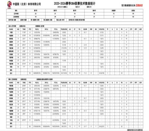 2025-2026賽季CBA常規(guī)賽第二十三輪,遼寧本鋼對陣江蘇肯帝亞的比賽于3日晚在遼寧體育館進(jìn)行,雙方在40分鐘常規(guī)時間戰(zhàn)平,遼寧本鋼隊最終通過加時賽,以95:82擊敗江蘇肯帝亞。