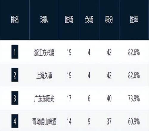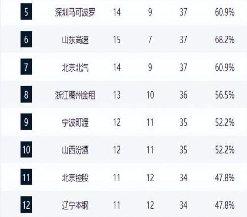 青島隊(duì)強(qiáng)勢崛起,主場擊敗廣州隊(duì)后以14勝9負(fù)升至第4,成為本賽季最大黑馬之一。與之同戰(zhàn)績的深圳隊(duì)則在加時(shí)賽惜敗,錯(cuò)失反超良機(jī),兩隊(duì)纏斗激烈,第4至第8名的競爭已進(jìn)入白熱化。