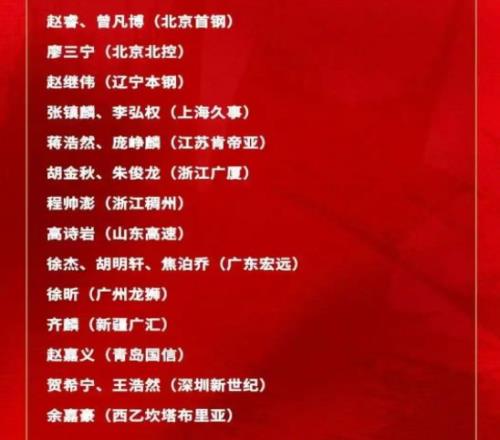 男籃21人實力分檔:趙繼偉第二檔,第一檔共6人,廣東2將第四檔