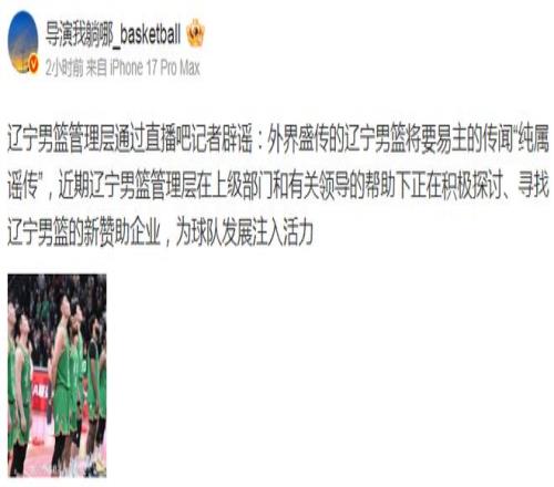 辟謠!工作人員明確否認(rèn)“遼籃易主”正尋找新贊助企業(yè)