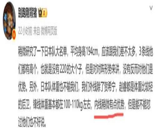 日前,日本籃協(xié)公布了世預(yù)賽的集訓(xùn)名單,對(duì)此媒體人別跑剛背豬發(fā)文表示:“日本平均身高1米94,和中國(guó)男籃差不太多,但中國(guó)男籃有內(nèi)線優(yōu)勢(shì)?!?/p>