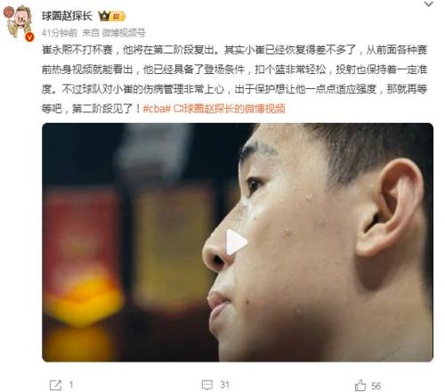 “不過球隊對小崔的傷病管理非常上心,出于保護想讓他一點點適應強度,那就再等等吧,第二階段見了!”