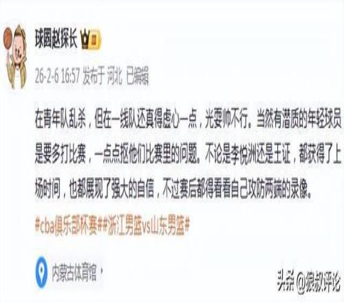 媒體人趙探長發(fā)文點(diǎn)評:在青年隊亂殺,但在一線隊還真得虛心一點(diǎn),光耍帥不行。當(dāng)然有潛質(zhì)的年輕球員是要多打比賽,一點(diǎn)點(diǎn)摳他們比賽里的問題。