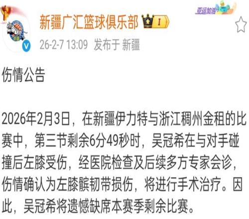 然而新疆男籃還是得到了壞消息,根據球隊方面的官方消息,內線大將吳冠希由于膝蓋傷病遭遇賽季報銷。這對于新疆男籃來說打擊不小,畢竟內線原本就只有勞森一名外援,李炎哲受傷后狀態(tài)一直都不理想,按照目前的情況來看,新疆男籃有可能會補充一名大外援。