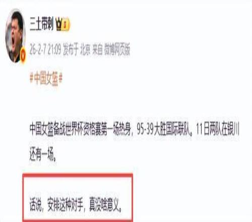這場一邊倒的勝利,引來媒體人“三土帶刺”尖銳批評:“安排這種對手,真沒啥意義?!薄徽Z道破核心矛盾:熱身賽的真正價值,是檢驗短板、磨合體系、模擬強(qiáng)敵,而非在弱旅身上刷數(shù)據(jù)、找自信。