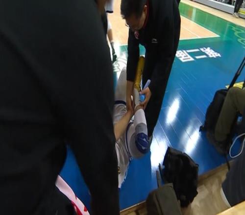 孫銘徽在首節(jié)開(kāi)局連得5分,但僅登場(chǎng)4分22秒,就在突破過(guò)程中不慎崴腳,隨后痛苦倒地抱著自己受傷的部位。孫銘徽起身后無(wú)法自行走路,無(wú)奈被背出賽場(chǎng),也是提前退賽,成為廣廈崩盤輸球無(wú)緣CBA俱樂(lè)部杯決賽的重要因素之一。