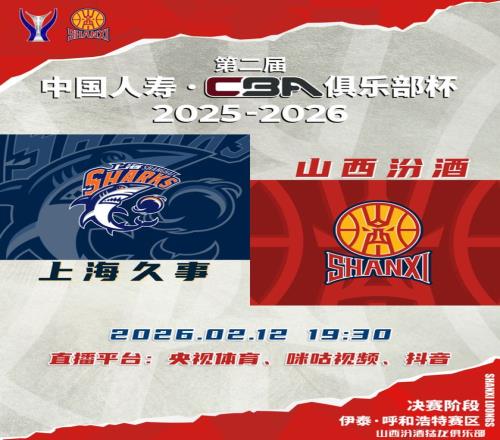 北京時(shí)間2026年2月12日19:30,第二屆中國(guó)人壽·CBA俱樂(lè)部杯將迎來(lái)最終對(duì)決,山西汾酒與上海久事?tīng)?zhēng)奪冠軍。本屆杯賽,山西汾酒一路拼搏,以全勝戰(zhàn)績(jī)強(qiáng)勢(shì)突圍,最終站在決賽舞臺(tái)!讓我們繼續(xù)全力以赴,為榮耀而戰(zhàn)!球迷朋友們可通過(guò)央視體育、咪咕視頻、抖音觀看比賽實(shí)況,與山西汾酒一起為勝利吶喊,為熱愛(ài)加冕!