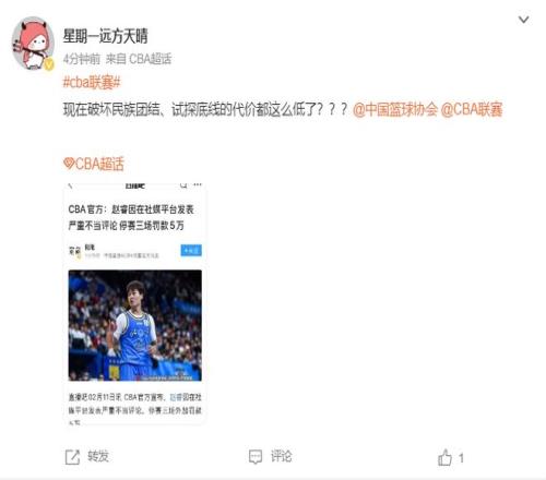 不少的球迷都在評論區(qū)表示這個處罰太輕了,輕拿輕放,多國家隊的比賽絲毫沒有影響,實際上該處罰他不能出戰(zhàn)中國男籃的比賽才對。