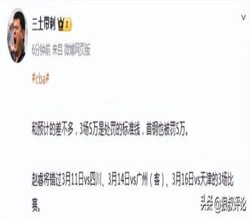 北京時間2月11日,CBA官方公示,北京男籃球員趙睿不當(dāng)言論罰單,他將會被禁賽3場,罰款5萬,而北京男籃則是核減經(jīng)費(fèi)5萬。