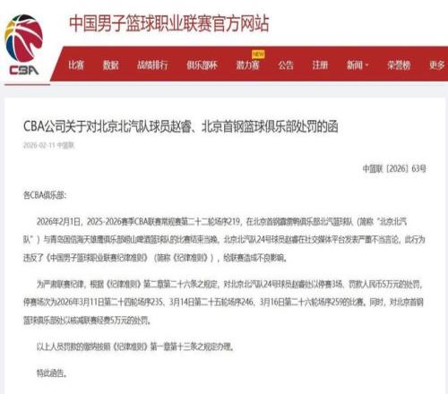 趙睿不當(dāng)言論被重罰,CBA官宣禁賽3場罰款5萬,首鋼被罰5萬