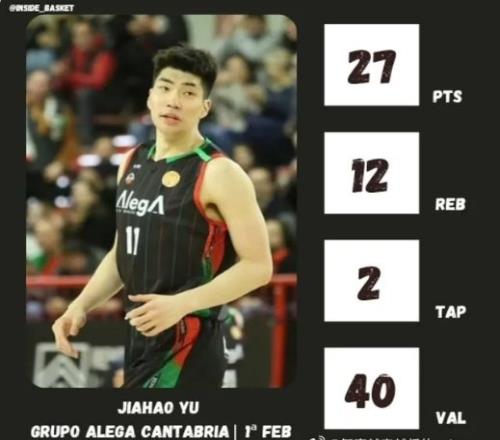 北京時間2月12日,中國男籃國手余嘉豪打出留洋生涯至今最強表現(xiàn),他在西乙第20輪坎塔布里亞79-87輸給Alimerka Oviedo Baloncesto的比賽大爆發(fā)。余嘉豪首發(fā)登場11中9準星極高,外加罰球10中9,狂轟27分12籃板2助攻1搶斷2蓋帽,創(chuàng)造留洋生涯單場最高分紀錄。