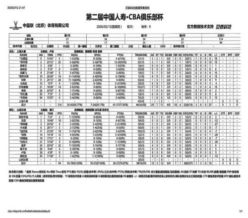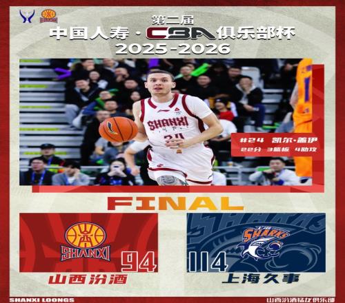 北京時間2026年2月12日19:30,第二屆中國人壽·CBA俱樂部杯決賽打響,山西汾酒在內(nèi)蒙古體育館,挑戰(zhàn)衛(wèi)冕冠軍上海久事。本場比賽,山西隊進攻狀態(tài)欠佳,防守不夠積極主動,包括籃板球處于劣勢,導(dǎo)致大比分落后,下半場全隊有明顯改善,并在末節(jié)奮力追分,但終究不敵對手,最終全場比賽結(jié)束,山西汾酒94:114不敵上海久事,獲得第二屆CBA俱樂部杯亞軍。