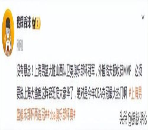沒(méi)有懸念!上海男籃大勝山西隊(duì)衛(wèi)冕俱樂(lè)部杯冠軍,外援洛夫頓收獲MVP,必須要說(shuō)上海大鯊魚(yú)這陣容班底太豪華了,絕對(duì)是今年CBA奪冠最大熱門(mén)。
