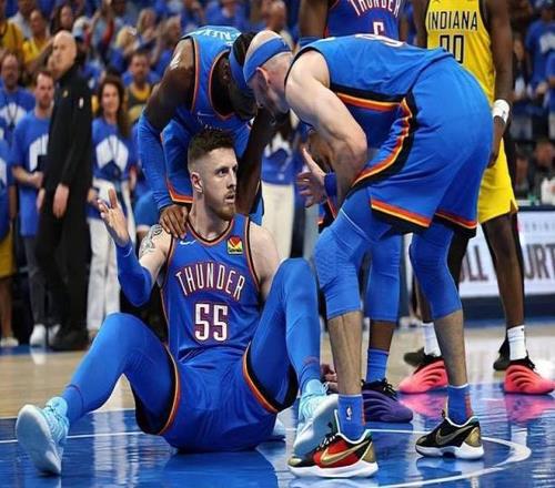 這正是雷霆隊最想念哈爾滕斯坦的地方,在沒有他的情況下,雷霆隊在前場的選擇有限。盡管霍姆格倫拼盡全力,但雷霆隊在籃板球上還是處于劣勢,并在低位進攻方面也乏善可陳。步行者隊全場搶下了51個籃板,而雷霆隊只有41個,尤其是步行者隊搶下的14個進攻籃板才是真正殺死比賽的關(guān)鍵。