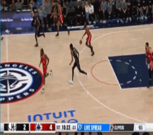 開場哈登的第一攻,就被克拉克斯頓帽掉