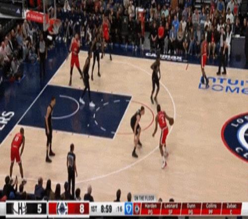 哈登負(fù)責(zé)控場,柯林斯在禁區(qū)活力十足