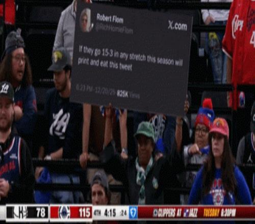 今天,快船球迷把這個(gè)推文打印出來帶到了現(xiàn)場
