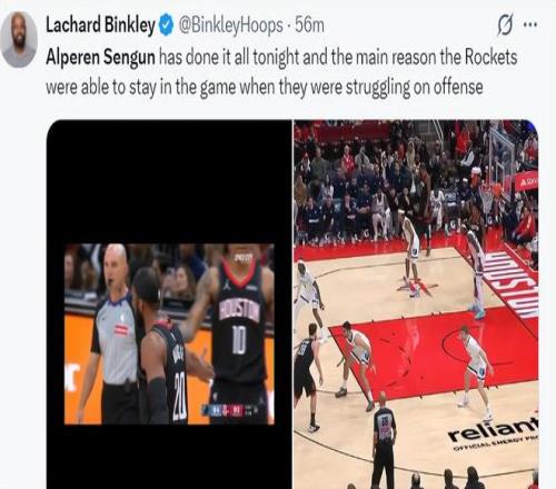 火箭隊(duì)記蘭德里-賓克利賽后寫(xiě)道:申京完成了所有任務(wù),這也是火箭隊(duì)在進(jìn)攻陷入困境的情況下仍能拿下比賽的原因。