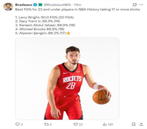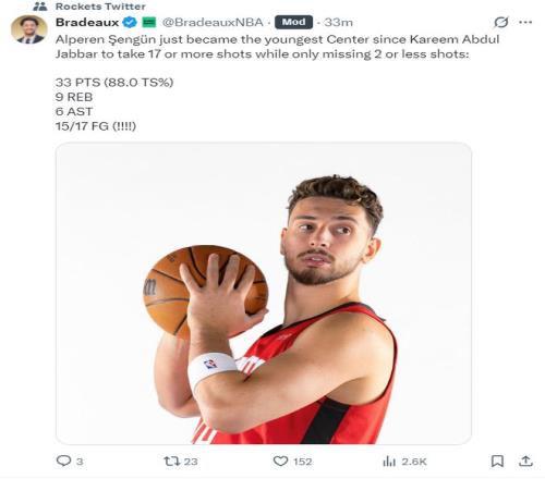 這場(chǎng)比賽申京17中15的表現(xiàn)也引發(fā)了休斯頓媒體的熱議,他也一戰(zhàn)創(chuàng)造多項(xiàng)紀(jì)錄: