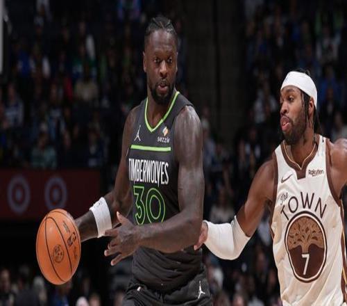 蘭德?tīng)?8+7戈貝爾15+17森林狼主場(chǎng)大勝?gòu)?fù)仇勇士