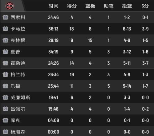 夏普、樂(lè)福的投籃效率均為7中1,斯普利特就是不給楊瀚森機(jī)會(huì),呂佩爾都打了7分多鐘,小楊枯坐板凳。第三節(jié)開拓者一度落后20分,之后開拓者不斷在籃下造犯規(guī),卡馬拉命中2記關(guān)鍵三分,當(dāng)樂(lè)福在反擊中上籃命中,開拓者追至56-66,打停凱爾特人。布朗造成殺傷罰球2進(jìn)1,夏普拉桿上籃打板命中,差9分了。凱爾特人的謝爾曼補(bǔ)籃得手,格蘭特上罰球線2罰都進(jìn)。