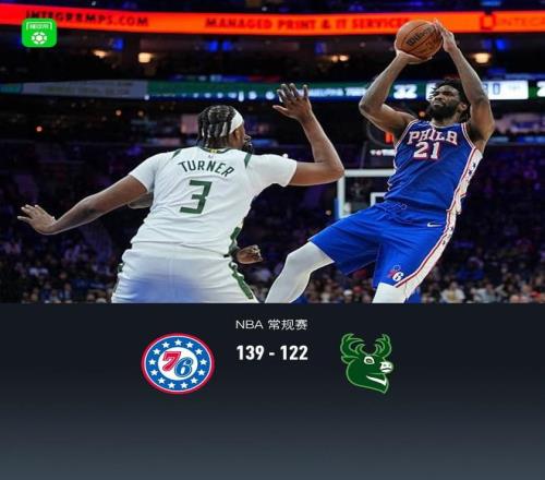 第四節(jié)76人麥凱恩拿下12分,雄鹿庫(kù)茲馬拿下5分,最終76人139-122戰(zhàn)勝雄鹿