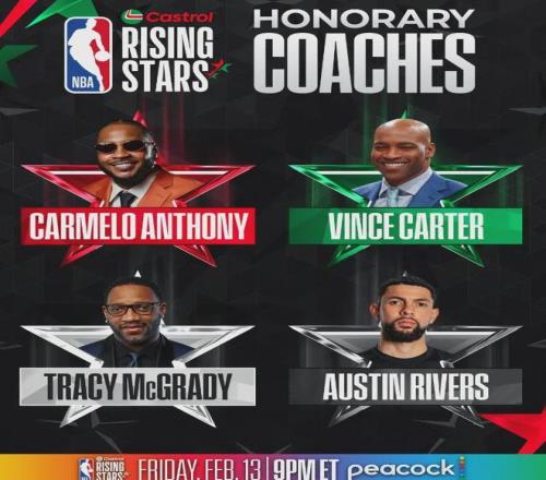 今年全明星新秀賽的榮譽主教練換了一批人,分別是甜瓜安東尼、卡特、麥迪和小里弗斯。
