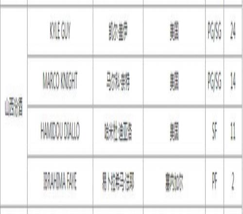 山西男籃的全新四外援陣容出爐,分別是迪亞洛、奈特、法耶與蓋伊。