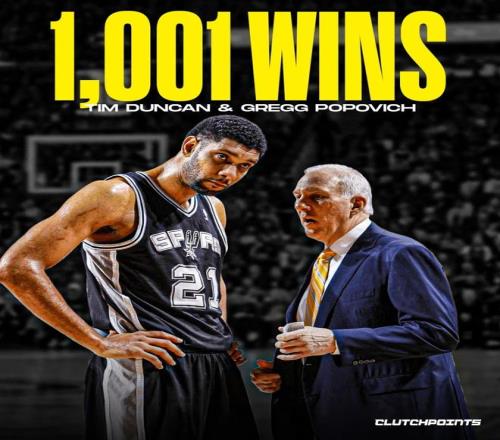 其中,鄧肯與波波維奇搭檔拿下1001場勝利,排名歷史第一,歷史前十中僅有兩隊(duì)搭檔是現(xiàn)役球員與現(xiàn)役主帥。