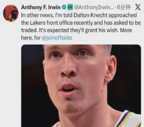 據(jù)美記報道,克內克特主動聯(lián)系湖人管理層申請交易,預計會得到同意......