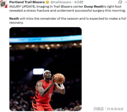 除了戈登,今天還有個(gè)比他還慘的“倒霉蛋”,開(kāi)拓者隊(duì)的內(nèi)線杜普 - 里斯,遭遇了應(yīng)力性骨折,這傷,就跟“定時(shí)炸彈”似的。開(kāi)拓者官方都發(fā)話了,里斯已經(jīng)做完手術(shù),可這賽季是徹底“涼涼”了。這賽季里斯打了32場(chǎng),場(chǎng)均2.9分1.2板,這數(shù)據(jù),就像小水花似的。開(kāi)季初,他還跟楊瀚森在第三中鋒的位置上“爭(zhēng)得你死我活”,可隨著賽季推進(jìn),他慢慢就變成純外線炮臺(tái)了,這倆人的戰(zhàn)術(shù)位置,就跟兩條平行線,沒(méi)啥競(jìng)爭(zhēng)關(guān)系。而且他倆上場(chǎng)時(shí)間都不多,在場(chǎng)下那叫一個(gè)親密,勾肩搭背地聊天,就跟多年未見(jiàn)的老友似的。
