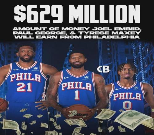 恩比德合同還剩4年2.48億美元,2029年夏天到期,平均年薪超過(guò)6000萬(wàn)美元。馬克西合同5年2.04億美元,也是2029年夏天到期,還剩4年1.69億美元。喬治合同4年2.12億美元,2028年夏天到期,還剩3年1.63億美元。