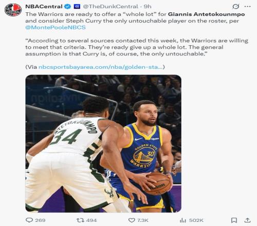 賽前根據(jù)NBC的報道,勇士會對揚尼斯進行豐厚的報價,勇士內(nèi)部只有庫里一人是非賣品。