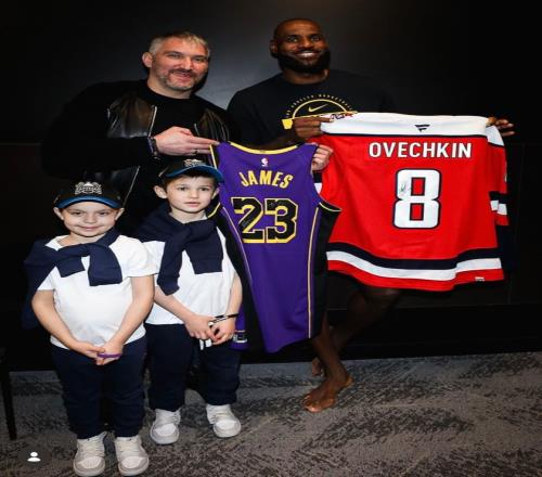 在湖人大勝奇才的比賽中,跟奇才都在華盛頓但屬于不同聯(lián)盟的球隊、NHL華盛頓首都人隊發(fā)布了個動態(tài),就是他們的當(dāng)家球星亞歷克斯·奧維契金賽后跟NBA門面詹姆斯合影并互換球衣、以及簽名的視頻。