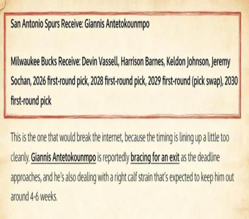 8換1!美媒建議馬刺加入字母哥爭(zhēng)奪戰(zhàn),聯(lián)手文班亞馬,即刻沖冠