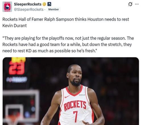 相比于驚險擊敗東部倒數(shù)第一,更加讓火箭隊開心的是球隊在杜蘭特因傷缺席的情況下贏球,讓這名開賽至今登場時間與壓力拉滿的37歲老將變相獲得了寶貴的休息時間。