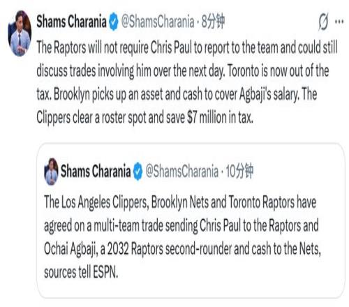北京時(shí)間2月5日,據(jù)名記Shams報(bào)道,快船、籃網(wǎng)和猛龍達(dá)成了一筆關(guān)于保羅的三方交易。具體內(nèi)容如下——