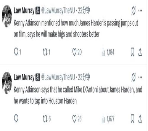 激活火箭登!阿特金森自曝請(qǐng)教德安東尼稱贊哈登籃球智商洞察力